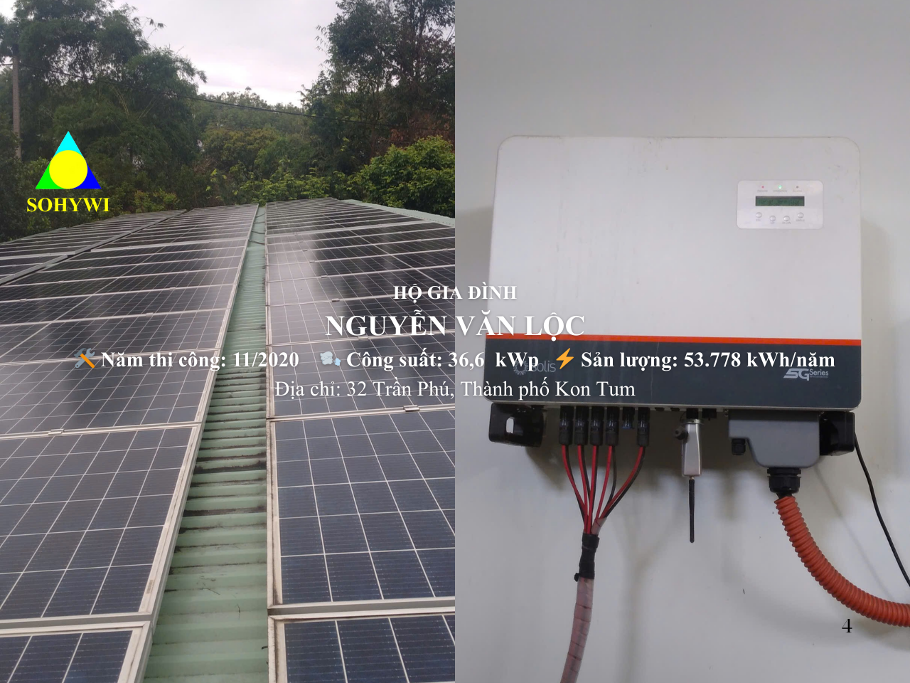 Với điện mặt trời, SOHYWI thi công mái nhà, mái xưởng cho cả phương án hòa lưới, độc lập và có lưu trữ; chọn tấm pin, inverter, pin lưu trữ chất lượng hàng đầu và tối ưu chi phí. Ngoài ra chúng tôi còn cung cấp đèn đường năng lượng mặt trời và hệ thống bơm nước năng lượng mặt trời cho nông nghiệp.