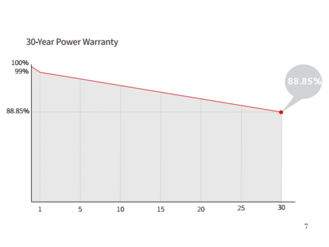 Bảo hành hiệu suất: 30 năm (hiệu suất duy trì cao, suy hao thấp)